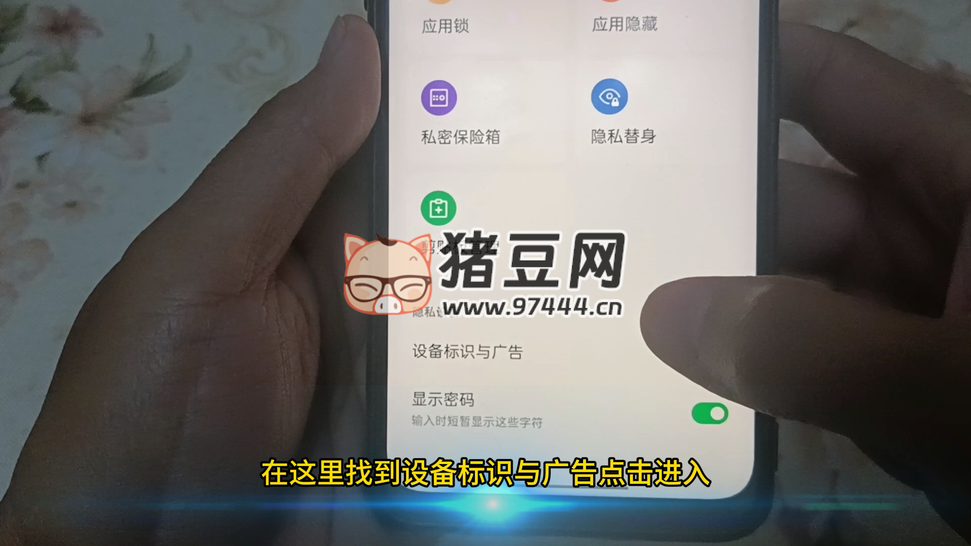 点击进入,然后再向上滑动,在这里找到设备标识与广告点击进入。