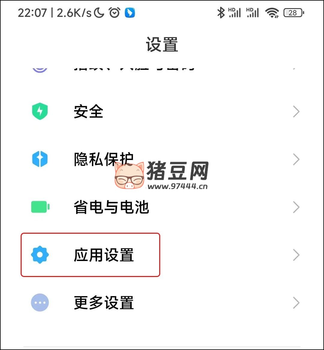 打开手机进入设置,在设置页面找到【应用设置】并点击进入。