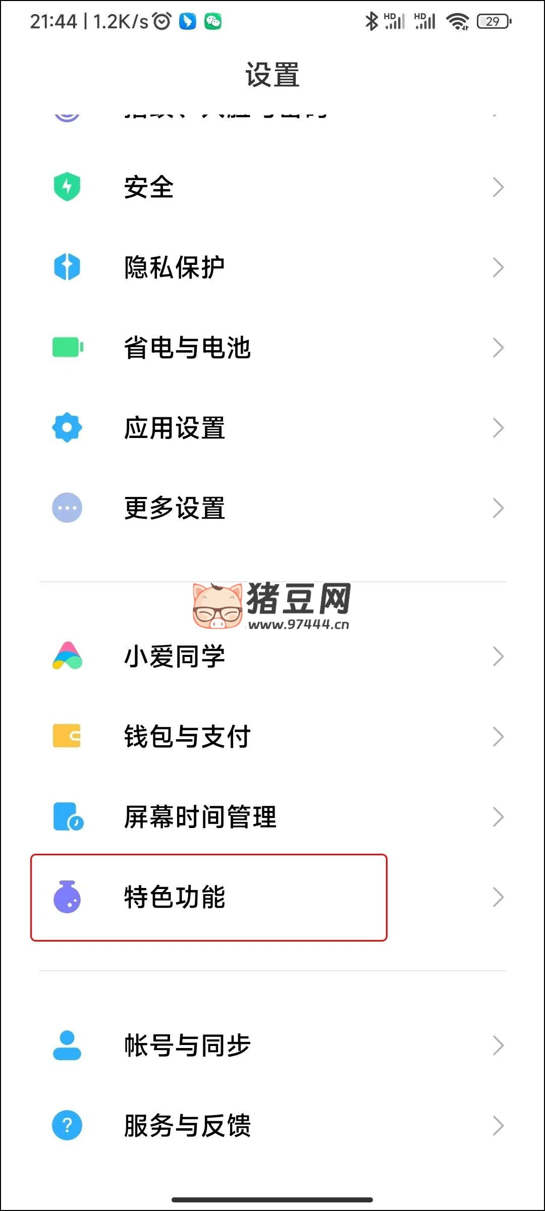 打开手机进入设置,然后在设置的页面找到【特色功能】并点击进入。