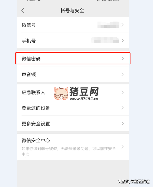 2、在“帐号与安全”下面找到“微信密码”进行密码修改