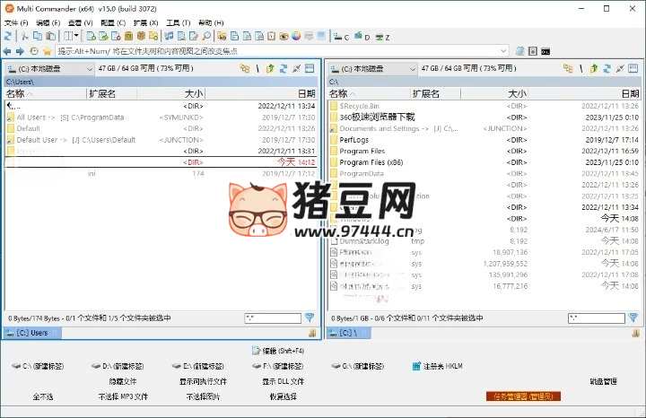 Multi Commander 中文版是一款多标签文件管理器,替代 Windows 资源管理器。特色包括双面板和标签页浏览,底部集成多种功能按钮,支持快速过滤文件,集成 FTP 和文本编辑器,支持多种压缩格式,并允许查看和修改文件夹权限。
