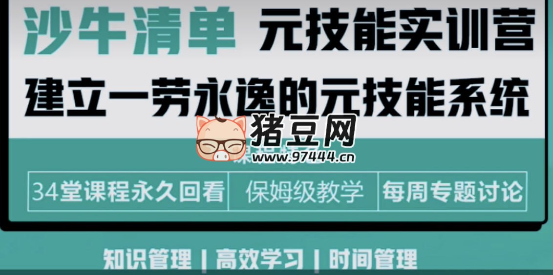 《沙牛清单 - 元技能实训营第四期》课程专注于提升个人效率与知识管理能力,涵盖知识管理、高效学习、时间管理三大核心模块。课程通过 Notion、Obsidian、Anki、滴答清单等工具,帮助学员建立系统化的知识管理体系、高效学习方法和时间管理策略。内容从工具使用到系统搭建,结合实操案例与思维训练,全面提升学员的学习效率、时间规划能力及知识整合能力。适合希望提升个人效率、优化工作流程的学习者。