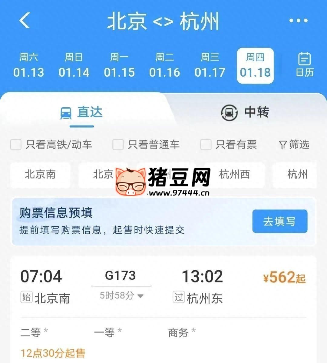 注意:购票信息预填功能仅在当天即将开售的车次列表中出现。
